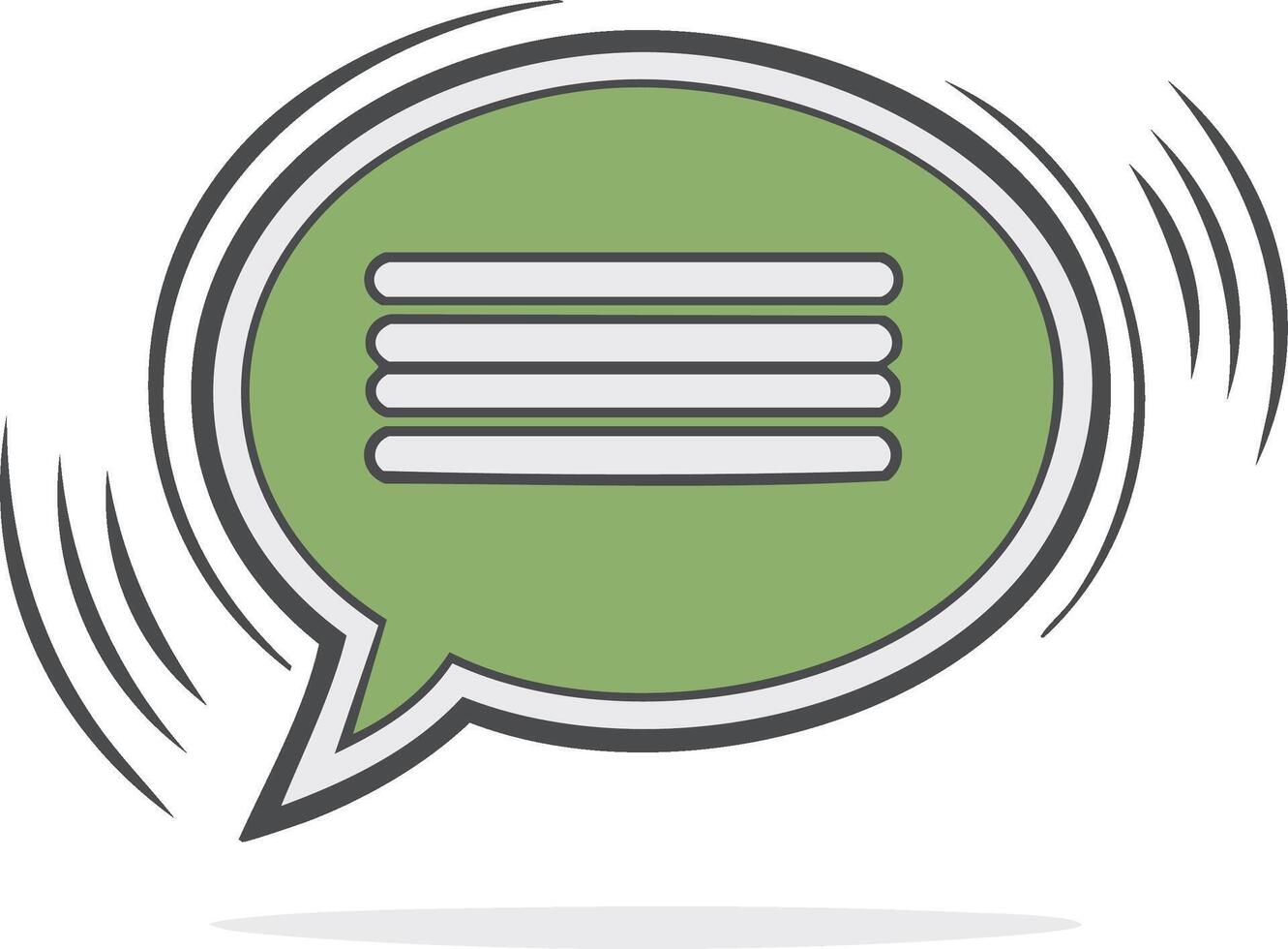 Green speech bubble with lines representing text and motion lines conveying communication Pro Vector