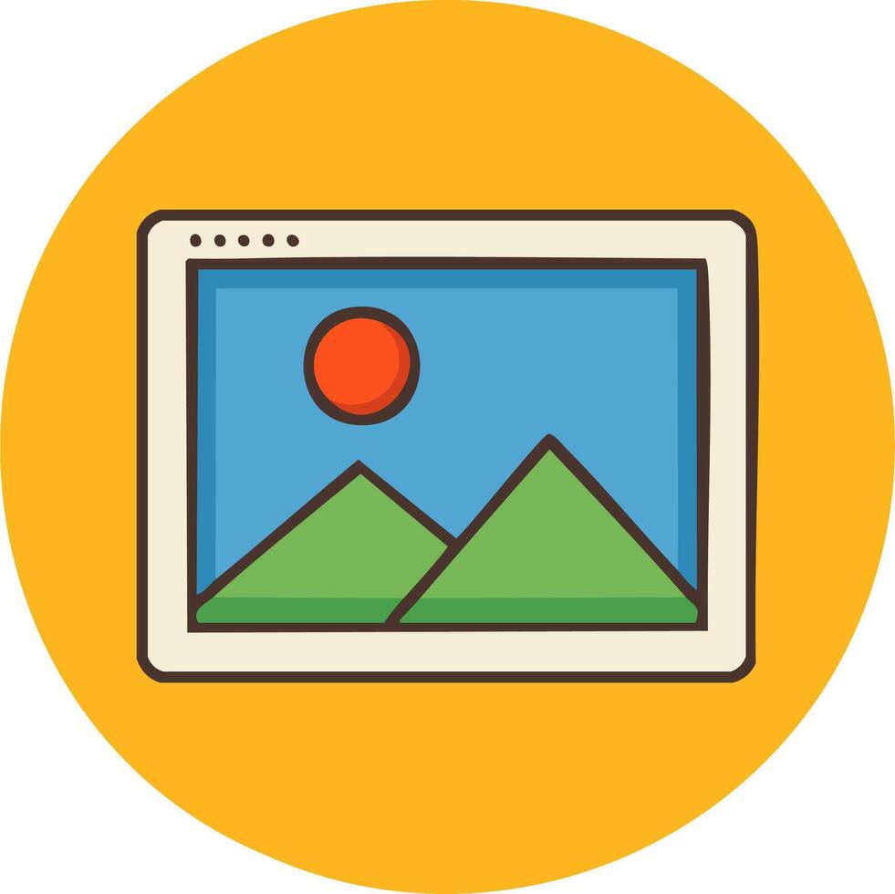 Illustration of a device displaying mountains and a sun inside of a yellow circle Pro Vector