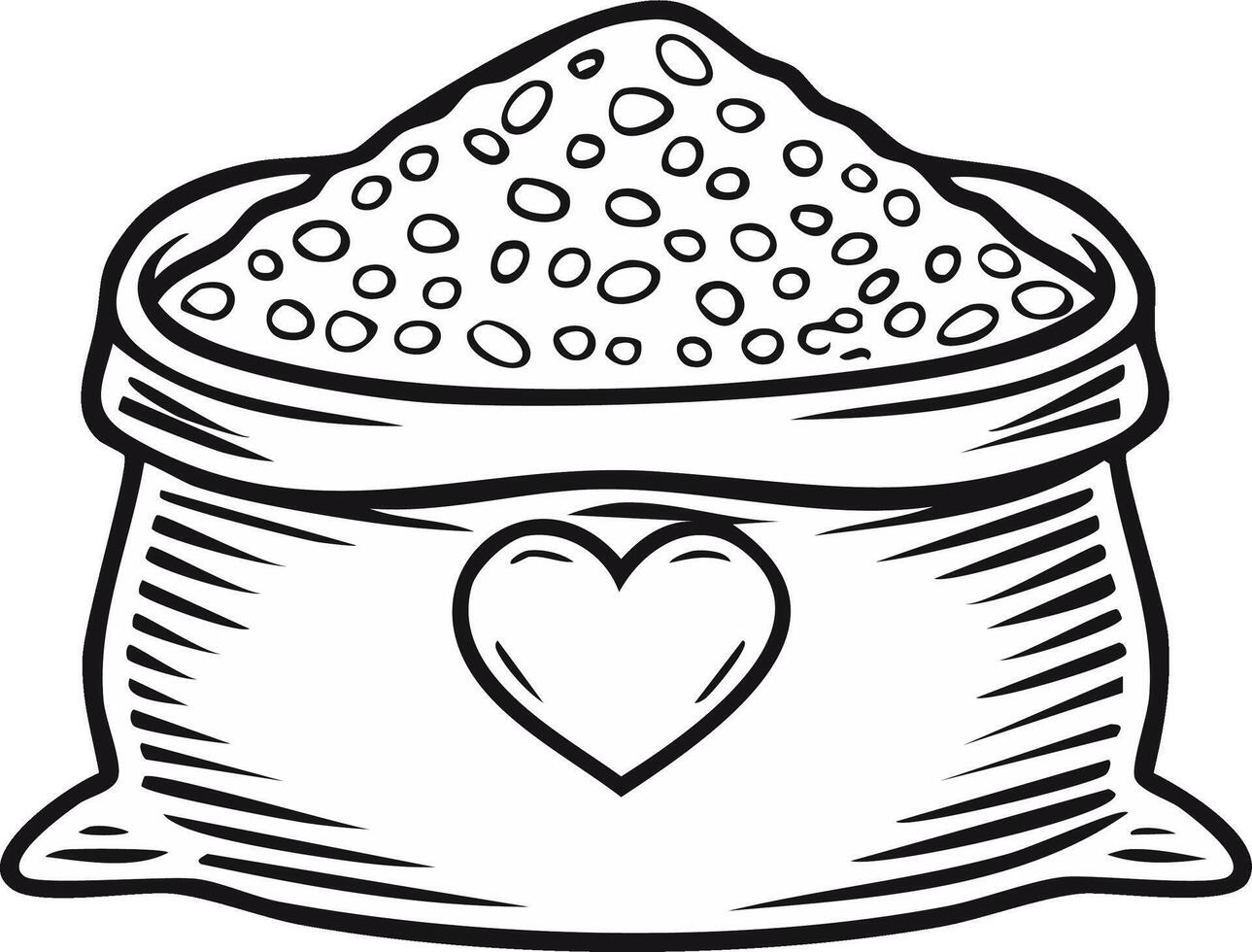 Sketch of a burlap sack filled with grain with a heart shape on the front Pro Vector