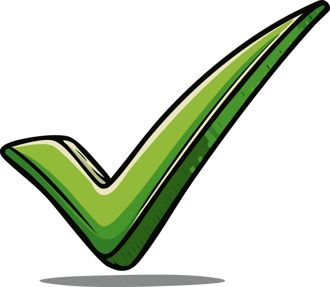 Cartoon Style Green Check Mark with Outline and Shadow on White Background Pro Vector