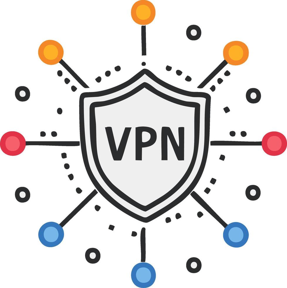 Secure VPN connection network shield with radiating points symbolizing connectivity and data protection Pro Vector
