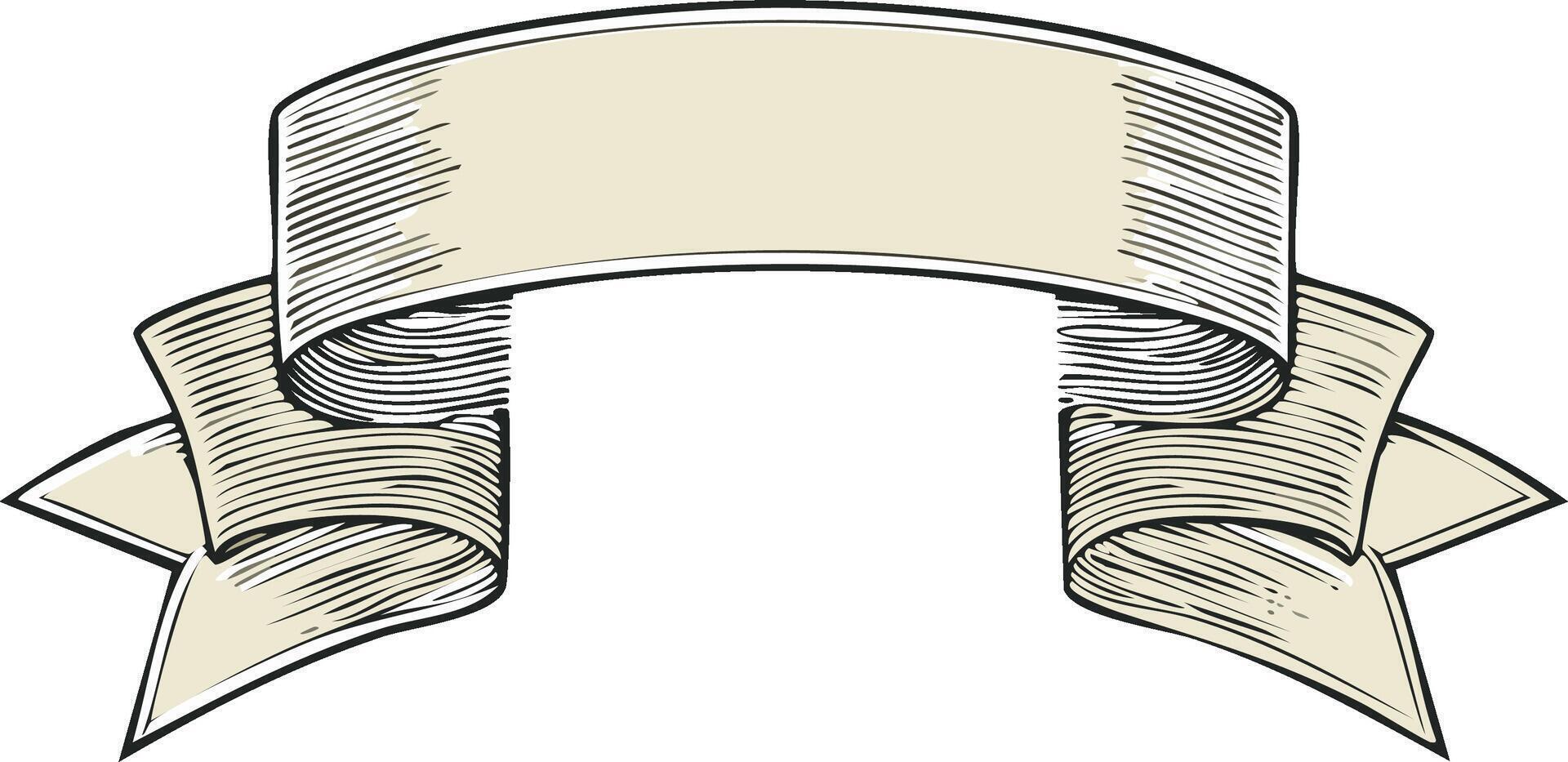 Elegant retro blank curved ribbon banner with engraved shading an isolated design element Pro Vector