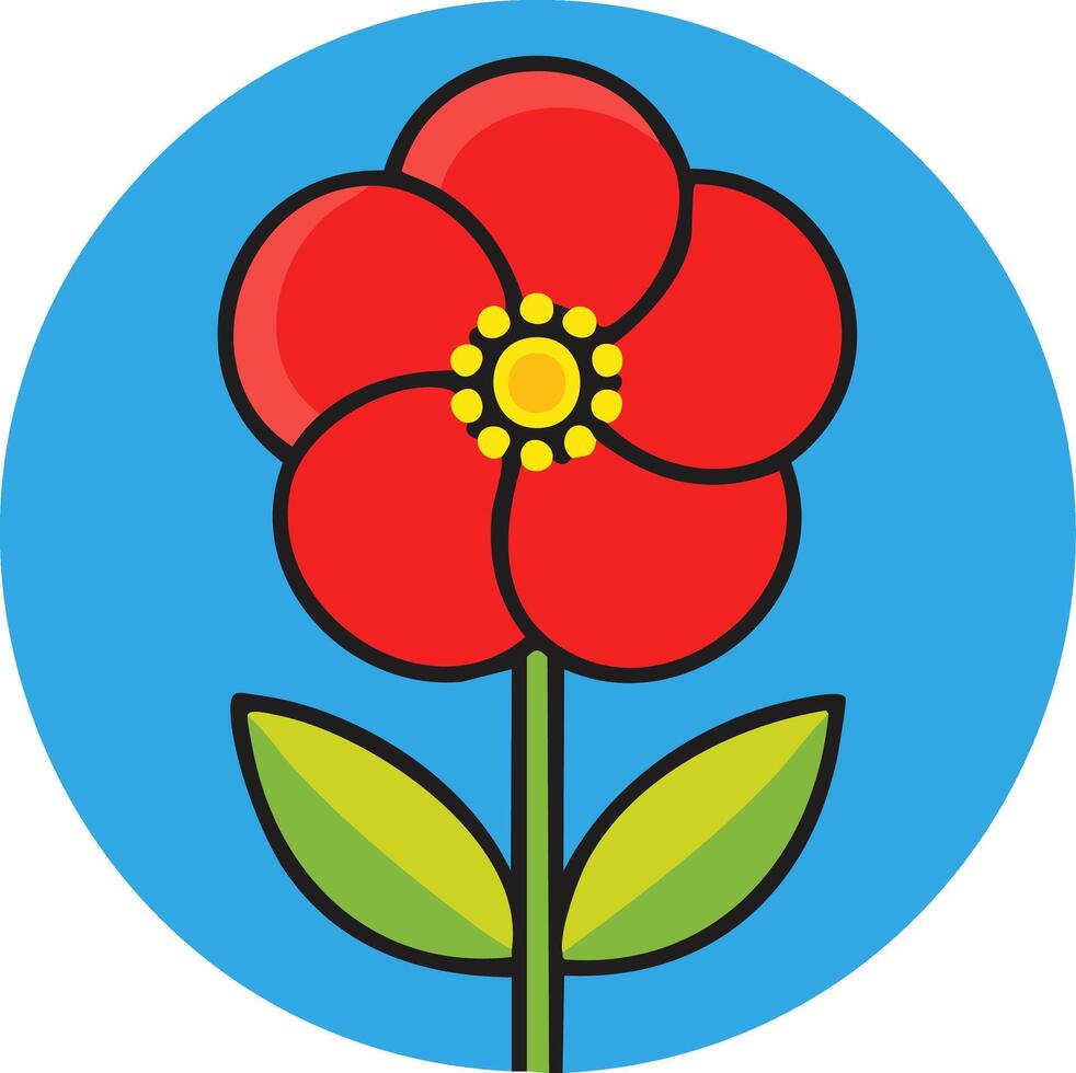 Stylized Red Flower with Five Petals Centered on Light Blue Round Background Design Element Pro Vector