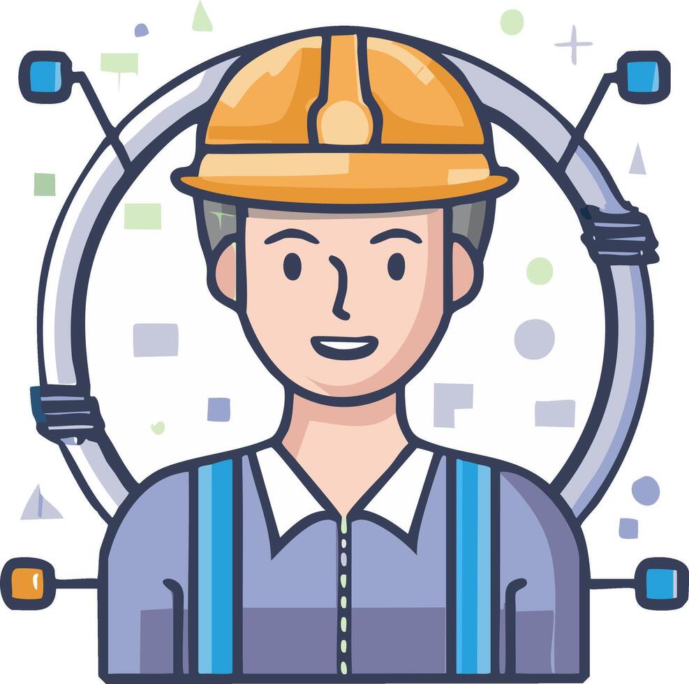 Smiling Male Engineer in Hard Hat with Abstract Technology and Infrastructure Elements Pro Vector