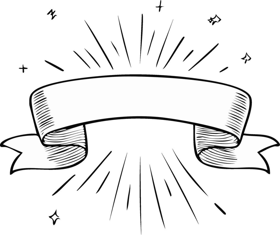 Decorative banner ribbon with light rays and geometric shapes sketched in ink Pro Vector