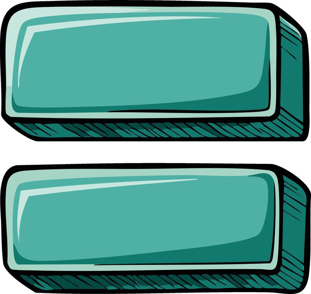 Two rectangular teal buttons with a 3D effect and outline illustration Pro Vector