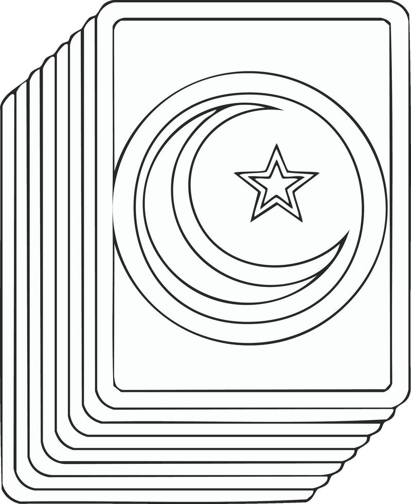 Stack of outline playing cards featuring a crescent moon and star symbol Pro Vector