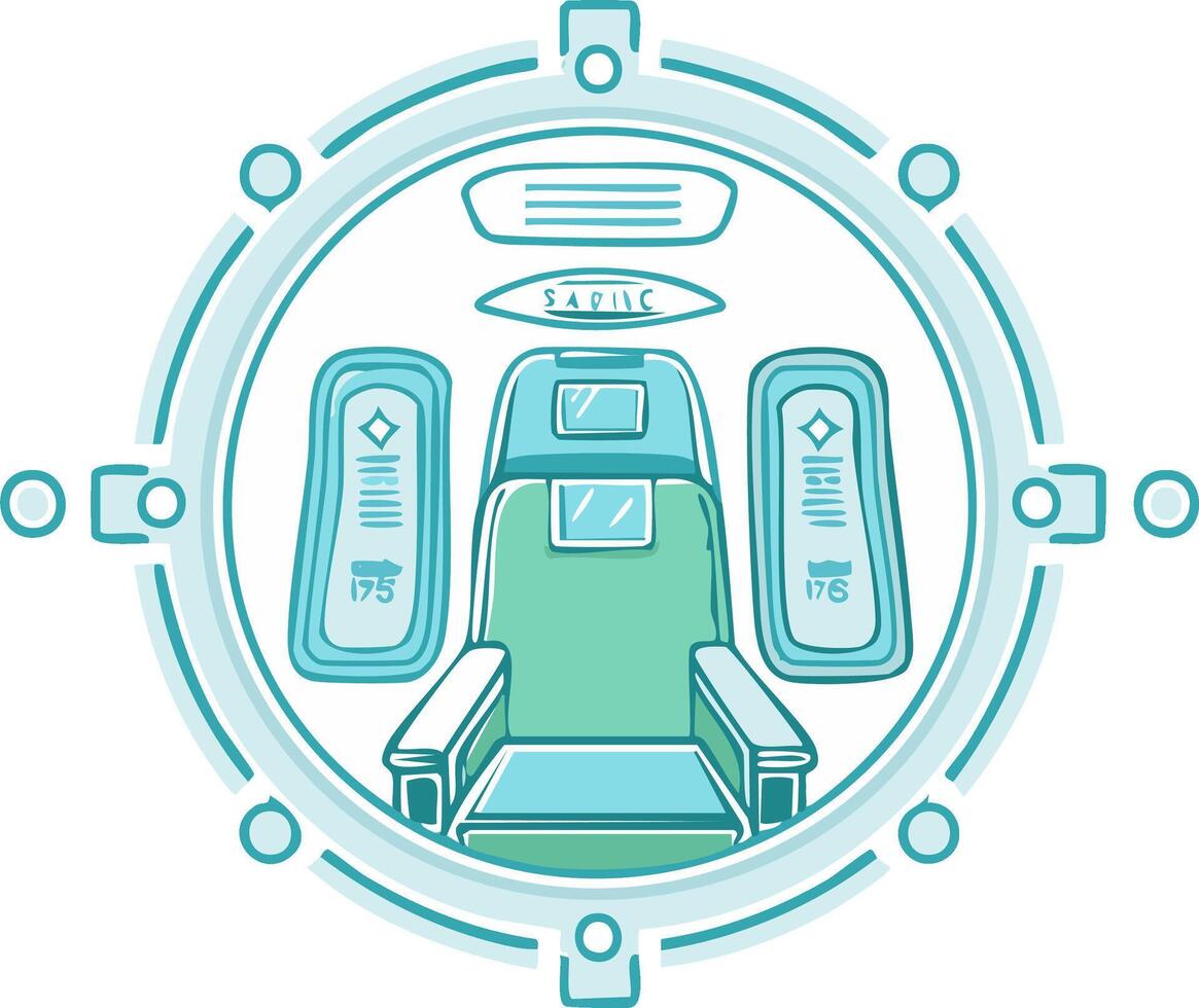 Spaceship Cockpit Control Panel With Captains Chair and Display Screens Pro Vector