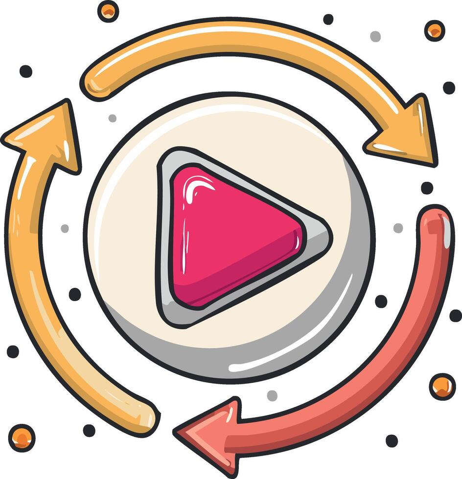 Circular Arrows Rotating around a Play Button, Looping and Repeating Cartoon Concept Pro Vector
