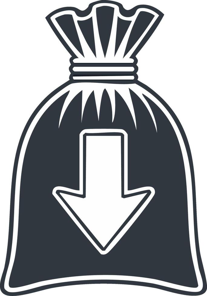 Decrease Concept Dark Bag with Arrow Symbol, Illustration, Decrease Concept Pro Vector