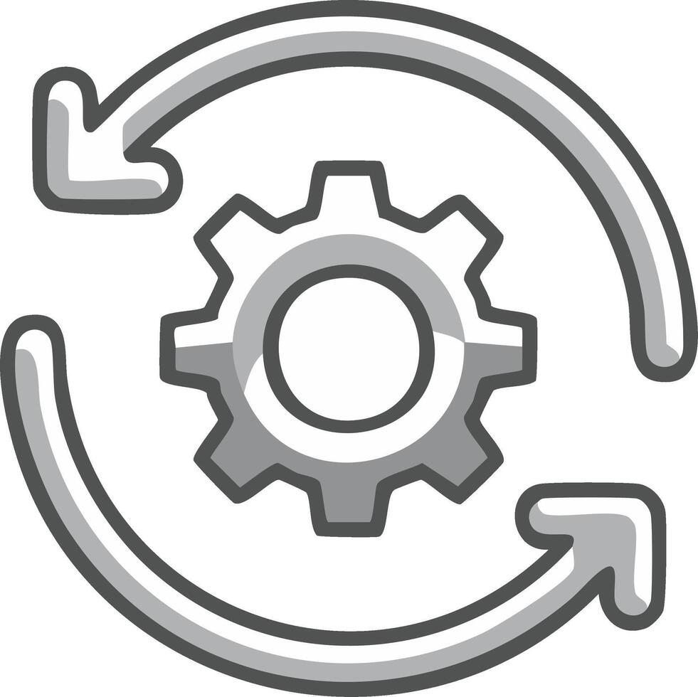 Circular arrows around a gear icon symbolizing workflow and process Pro Vector