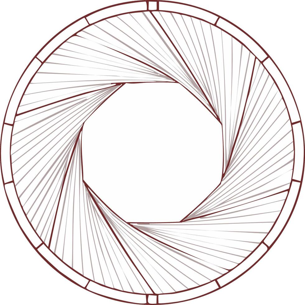 Minimalist line art illustration of a camera shutter aperture with a spiral geometric pattern Pro Vector