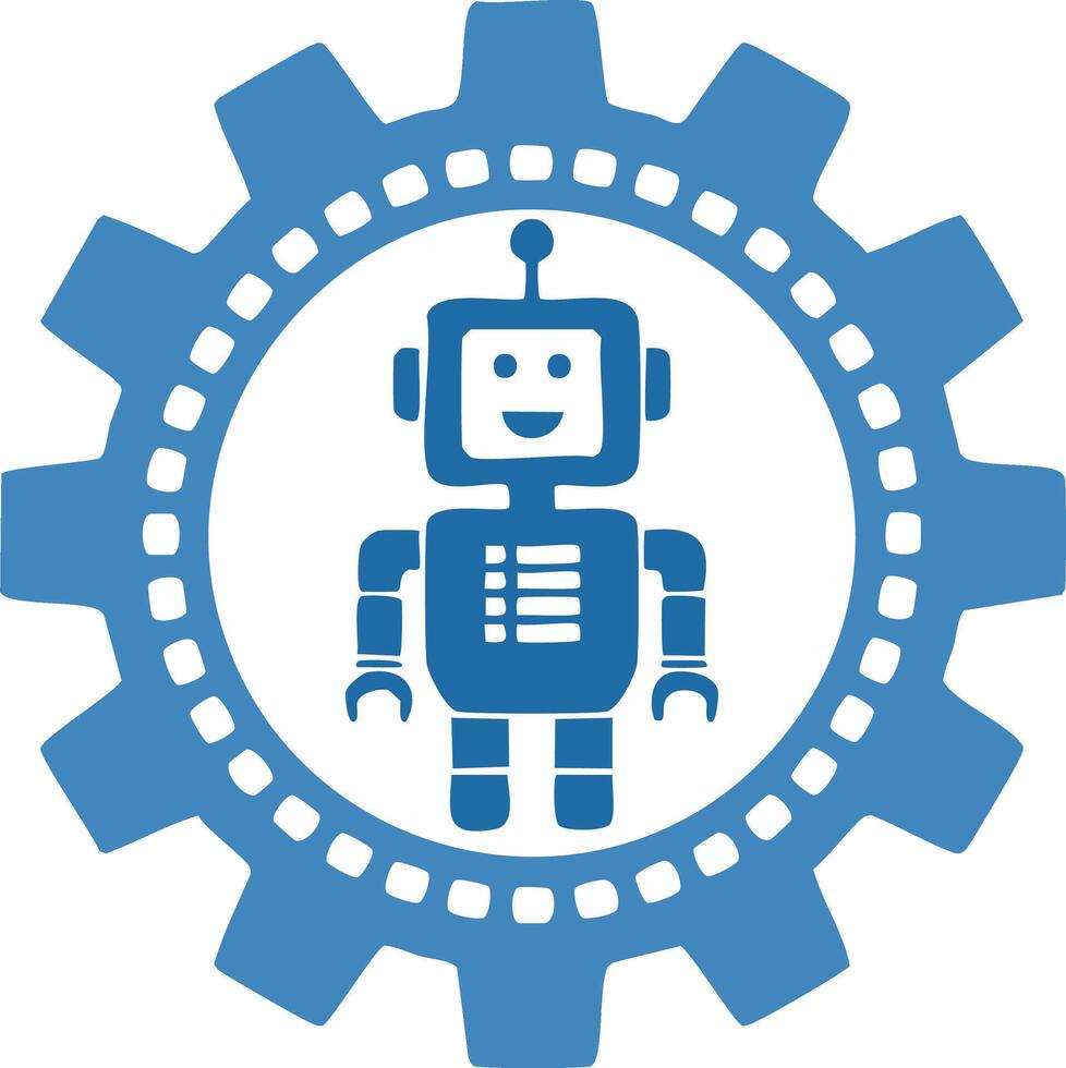 Friendly Robot Mascot Inside a Gear Icon for Technology and Automation Pro Vector