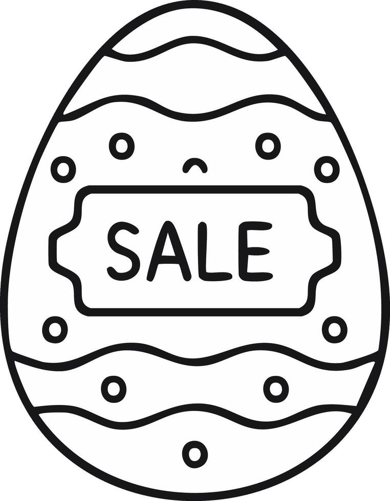 Easter egg with SALE label and decorative wavy lines and circles in outline style Pro Vector