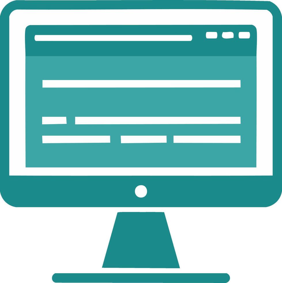 Modern teal computer monitor display with abstract content on screen Pro Vector