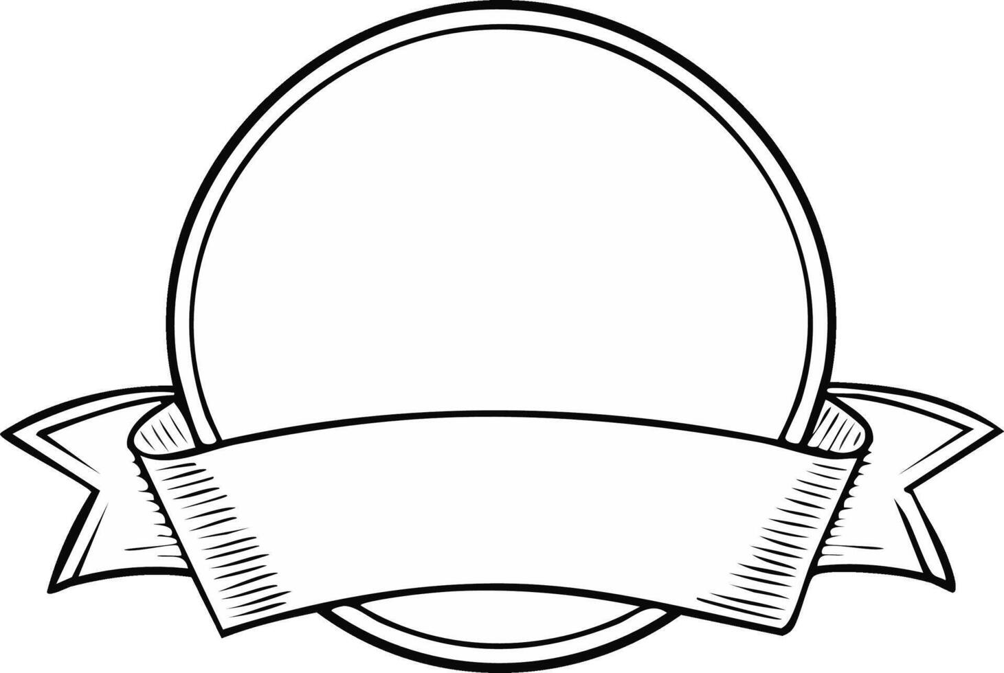 Circular Badge with Ribbon Design Element Sketch in Black and White Outlines Pro Vector