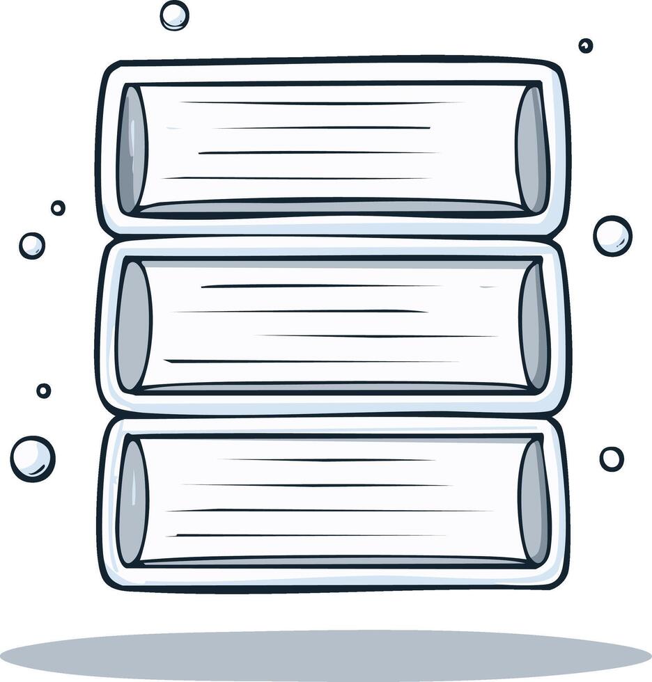 Illustration of three stacked rectangular objects and floating bubbles Pro Vector
