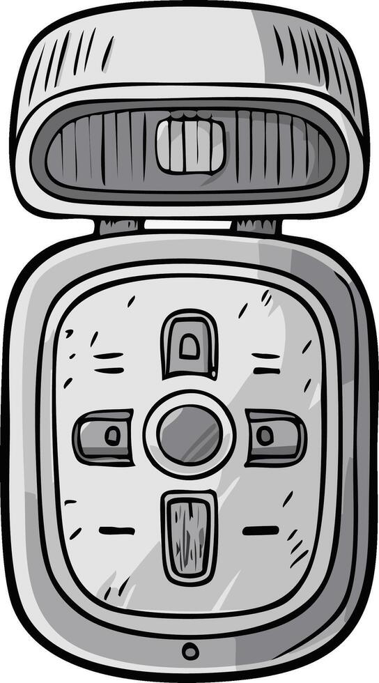 Stylized drawing of a handheld electronic device with buttons and a speaker grille Pro Vector