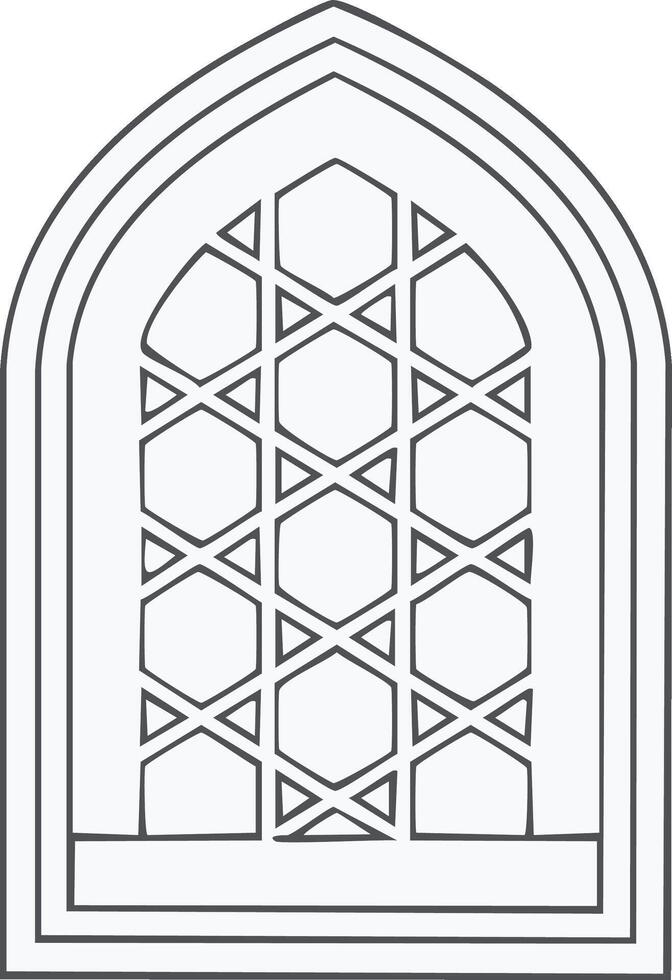 Arched window frame featuring intricate geometric pattern inspired by Islamic art and architecture Pro Vector