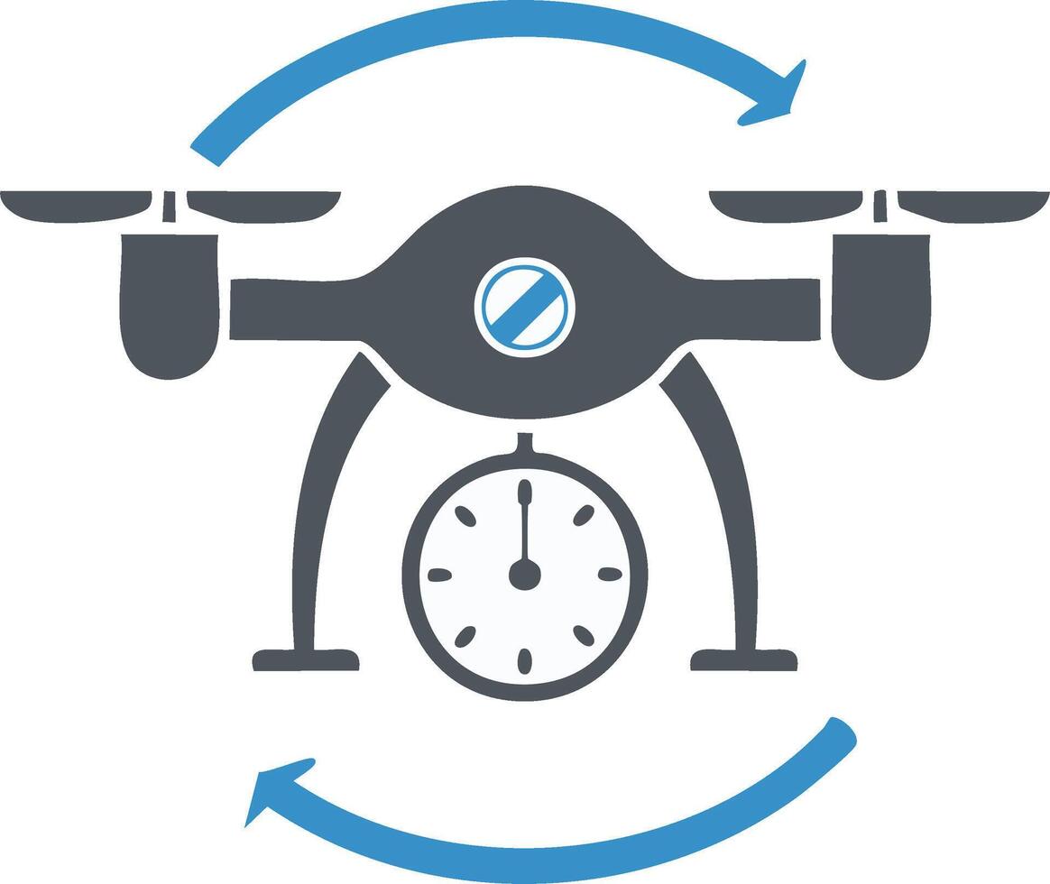 Quadcopter flight time icon with clock and rotation arrows for drone services Pro Vector