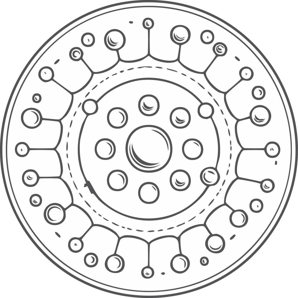 Abstract Circular Geometric Pattern with Bubbles and Lines Pro Vector