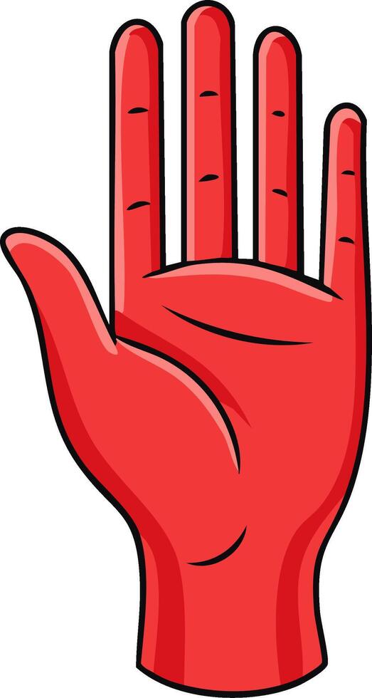 Stylized red cartoon hand with open palm showing a stop or high five gesture Pro Vector
