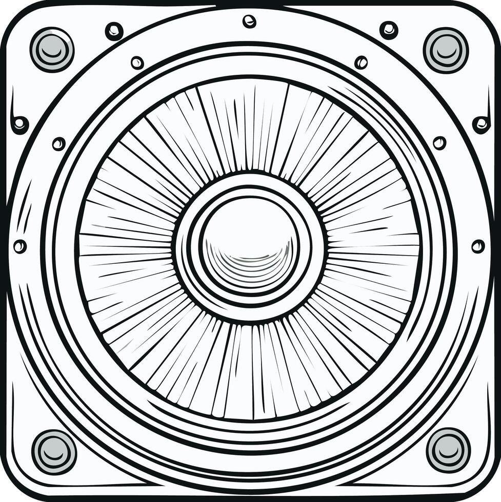 Monochrome Line Art Illustration of a Square Speaker Grille with Rivets and Radial Patterns Pro Vector