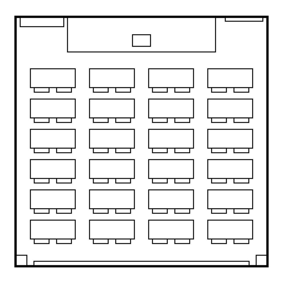 A top-down geometric outline of a room. Rectangular tables and other boxes suggest a classroom setup, including teacher area and arrangement Pro Vector