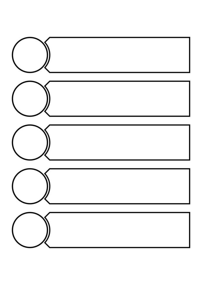 A flowchart template with five rows, each featuring a circle connected to a rectangle. The outlines are bold black on a white background Pro Vector