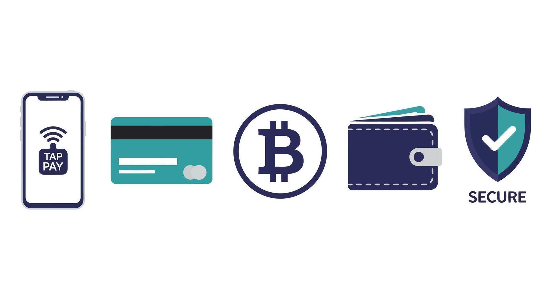 Payment Methods Icons Mobile Pay, Credit Card, Bitcoin, Wallet, Secure Pro Vector