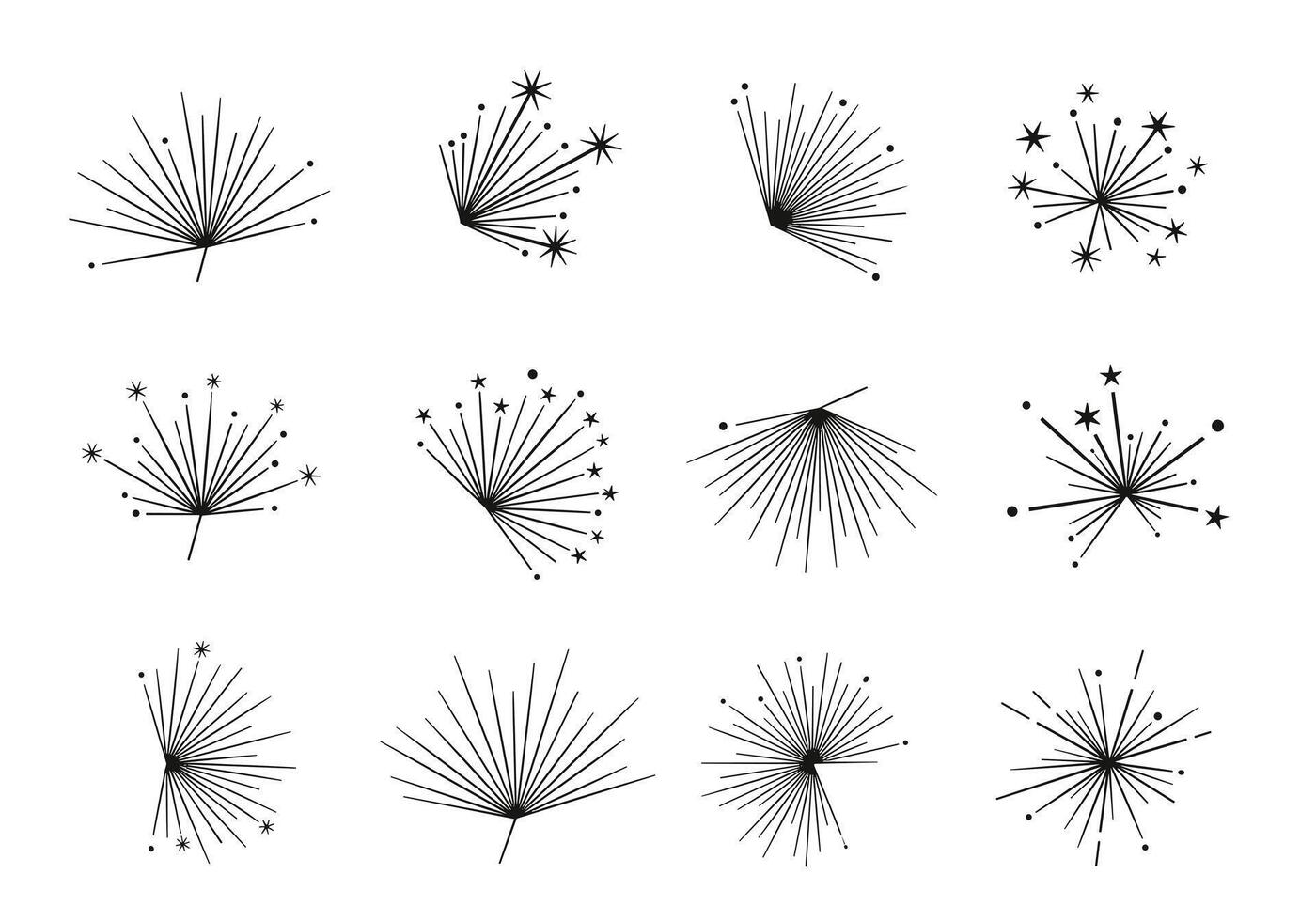 A collection of decorative burst elements with radiating lines and starbursts for graphic design projects. Pro Vector