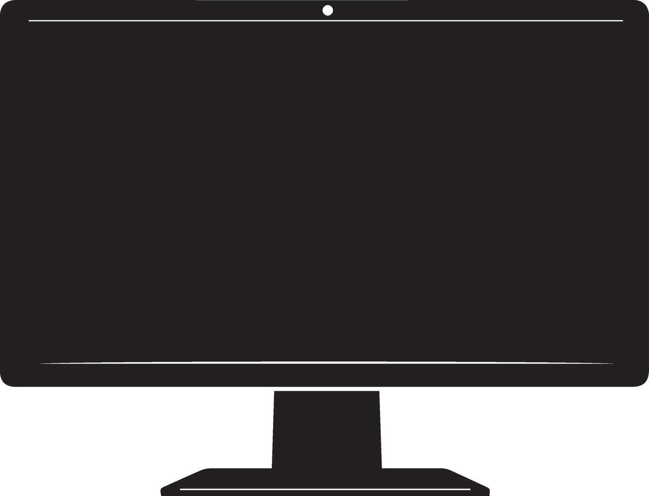 Black silhouette of a modern computer monitor isolated on white background Pro Vector