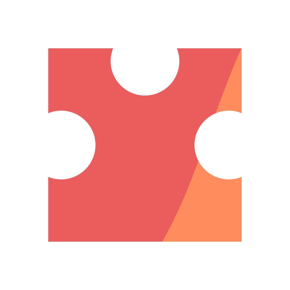 Flat jigsaw puzzle piece silhouette. Bright and simple game element for table or boardgame. Fun and playful toy concept, ideal for children activities or learning visuals. Pro Vector