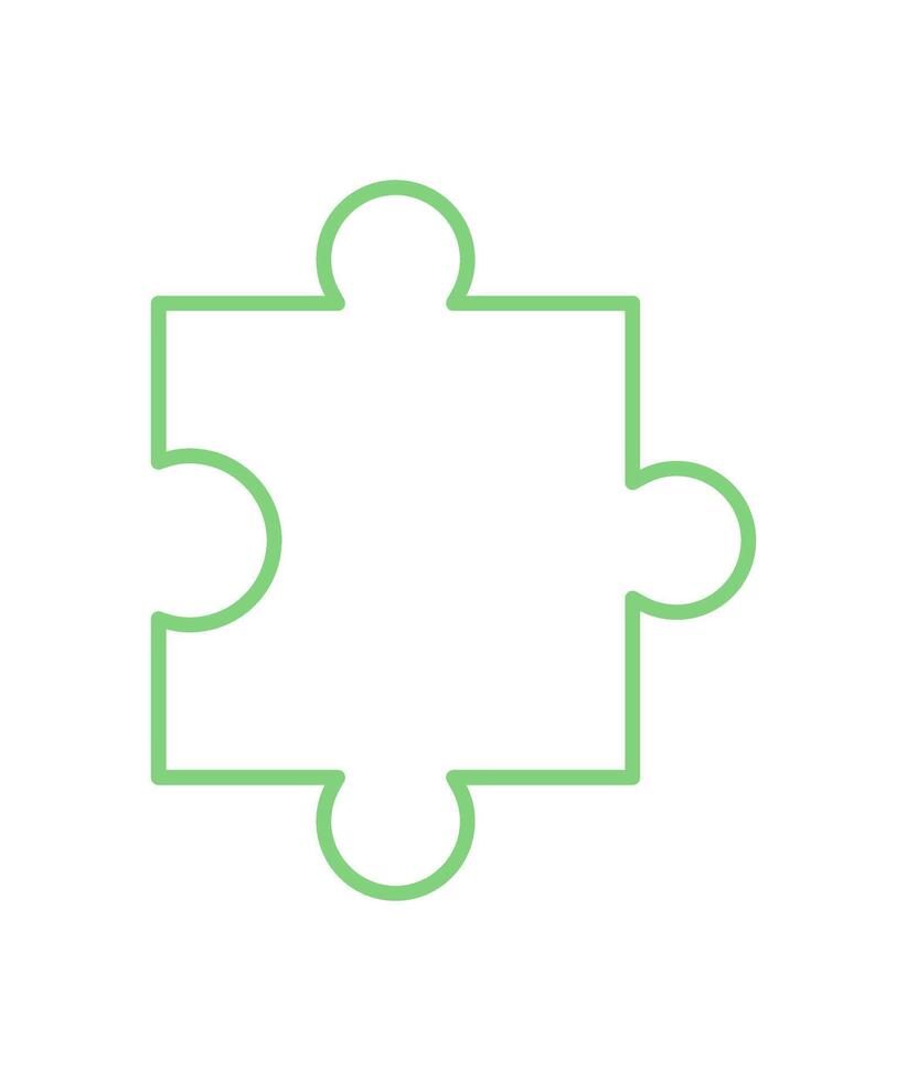 Flat silhouette of a jigsaw puzzle piece with minimal outline. Simple boardgame element for children or toy designs. Symbol of fun, play, and table entertainment concepts. Pro Vector