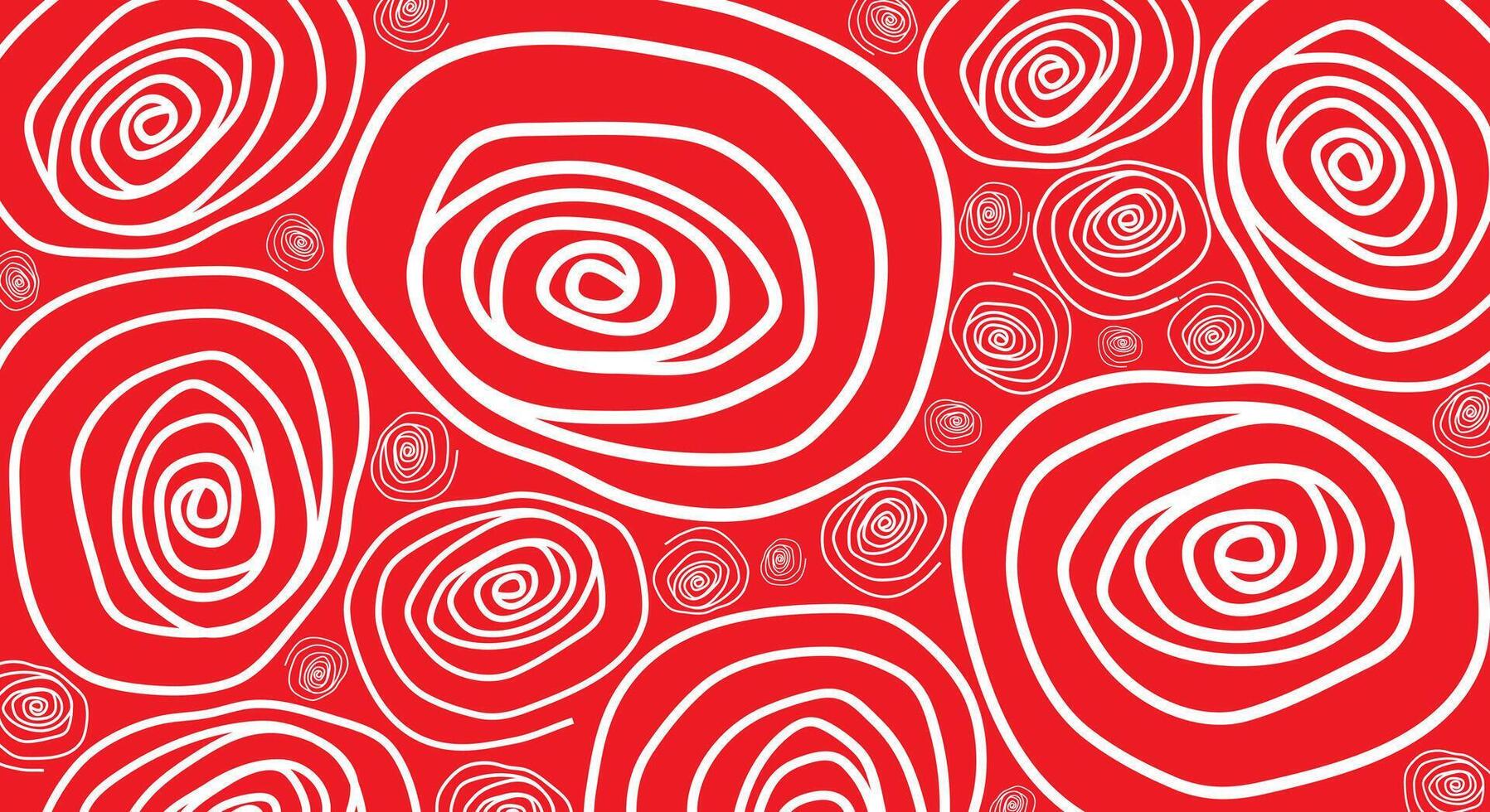 Abstract pattern of white swirls of various sizes on a red background Pro Vector