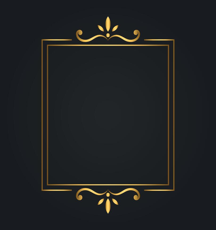 Square golden frame with double line and decorative top bottom ornament classic template Pro Vector