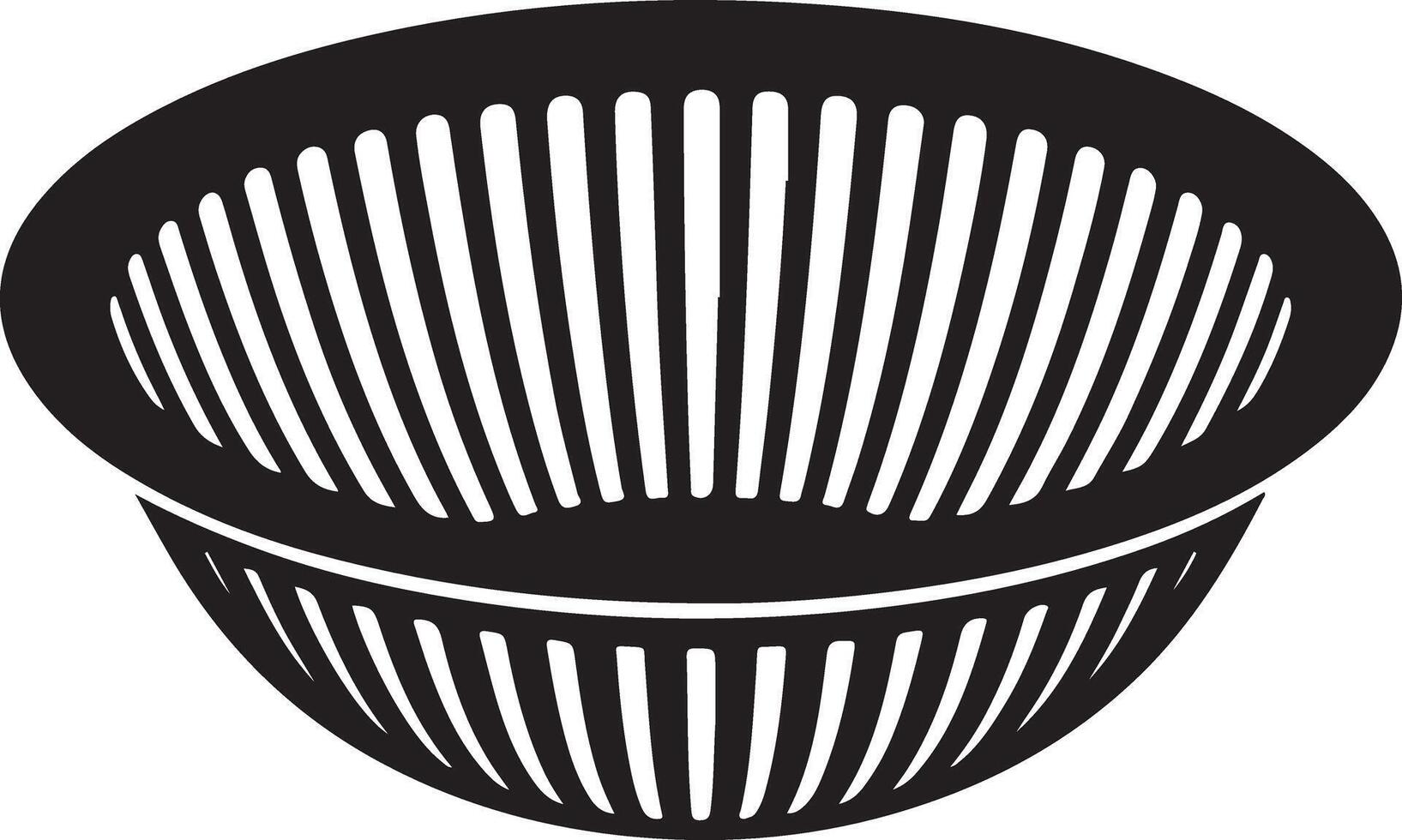 Black and white illustration of a round colander with vertical slits Pro Vector