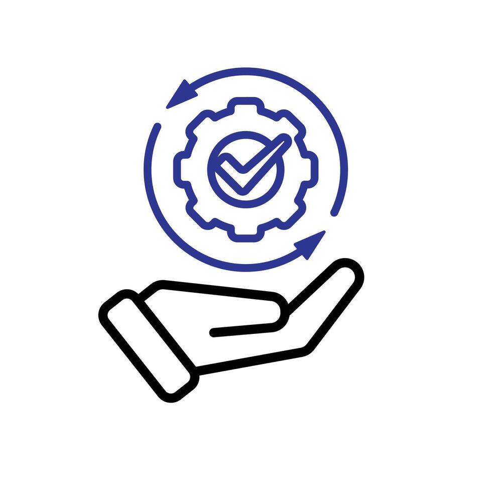 Automation icon. AI. Gear with a check mark and two circular arrows in hand. automatic, manager, web. Outline design style. Pro Vector