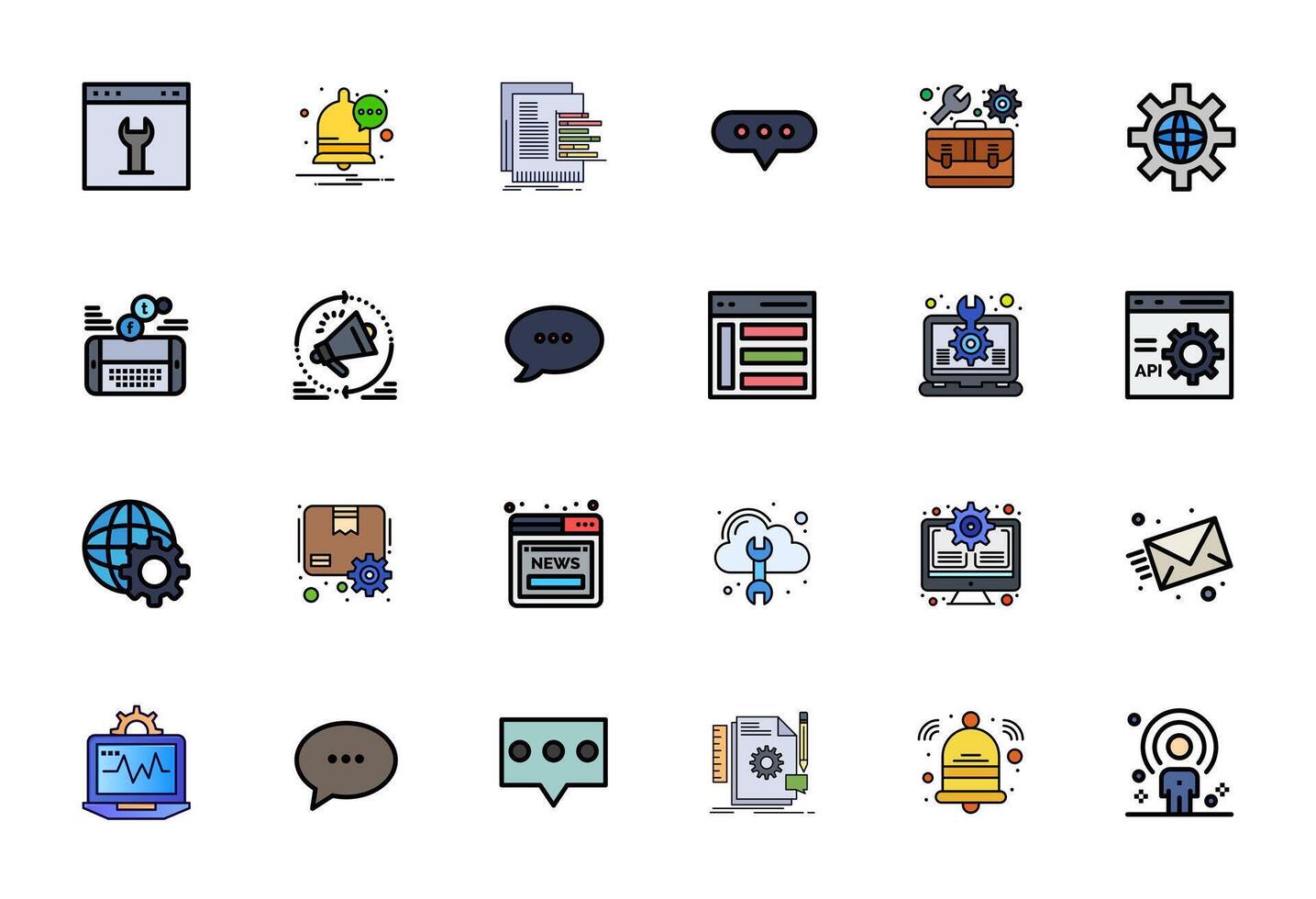 24 High Resolution Line Filled Icons for Updates with Grid Fitted precision Free Vector