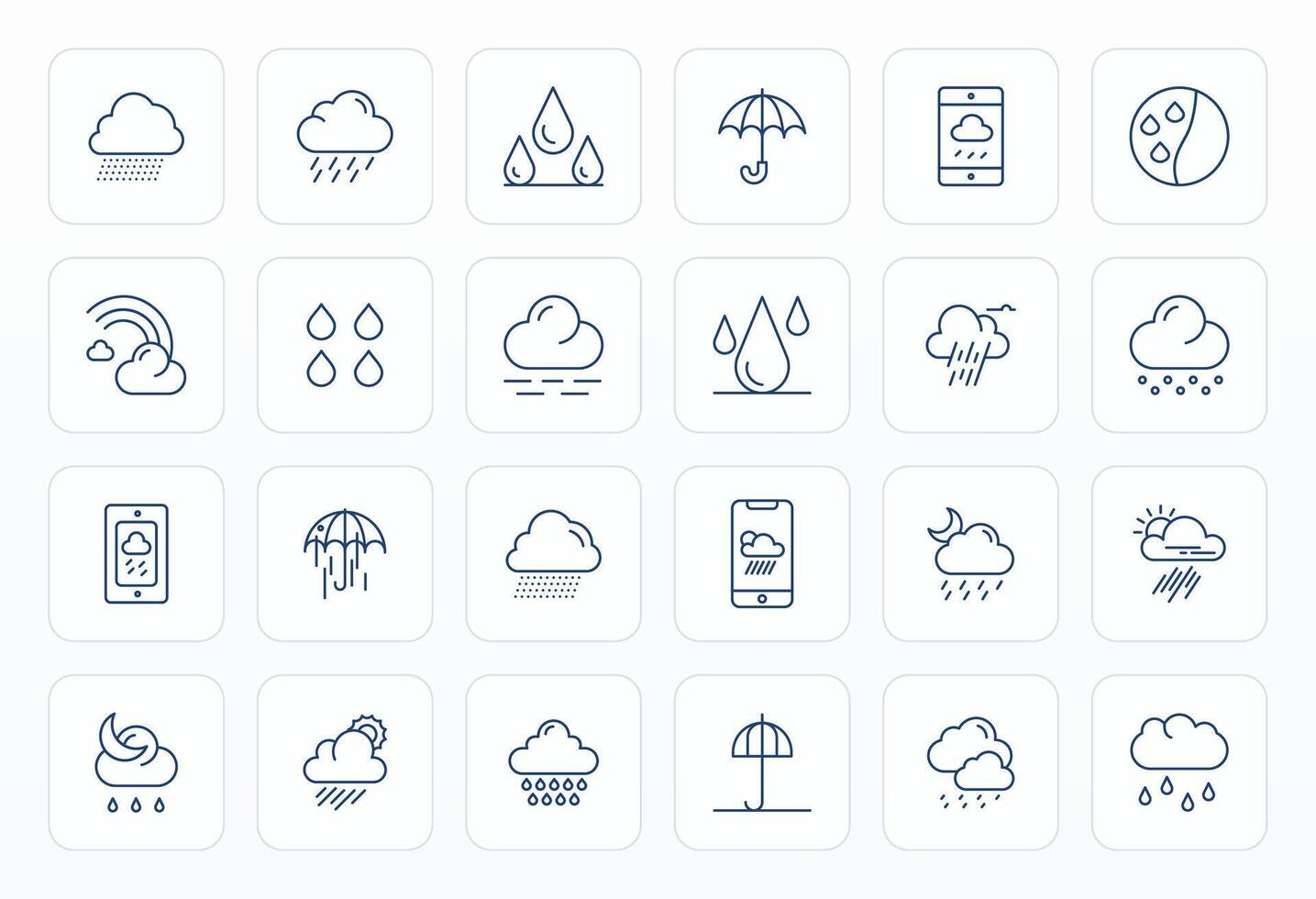 Drizzle Professional Set with 24 Bold Line Grid Fitted High Resolution Icons vector