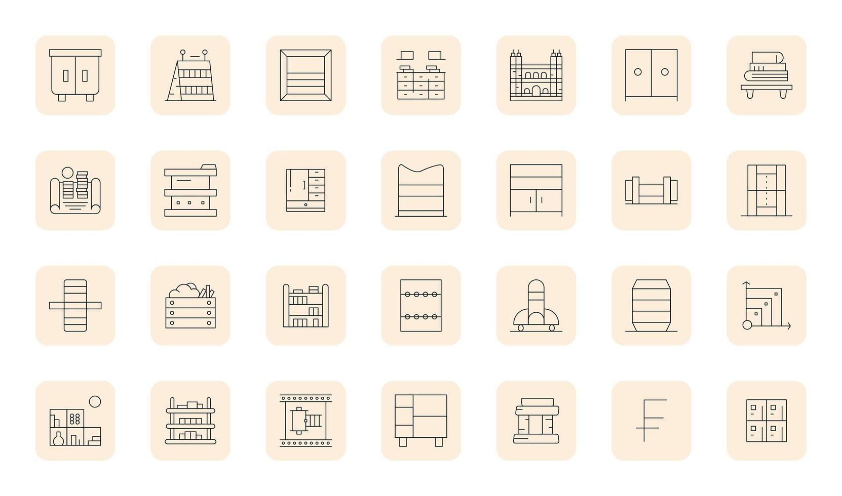 28 Grid Fitted Thin Outline Icons designed for Shelving Interface Free Vector