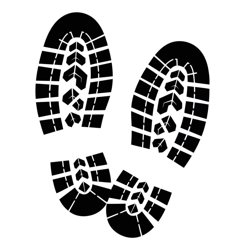 Black Footprints on White Background, Tread Pattern of a Boot Pro Vector