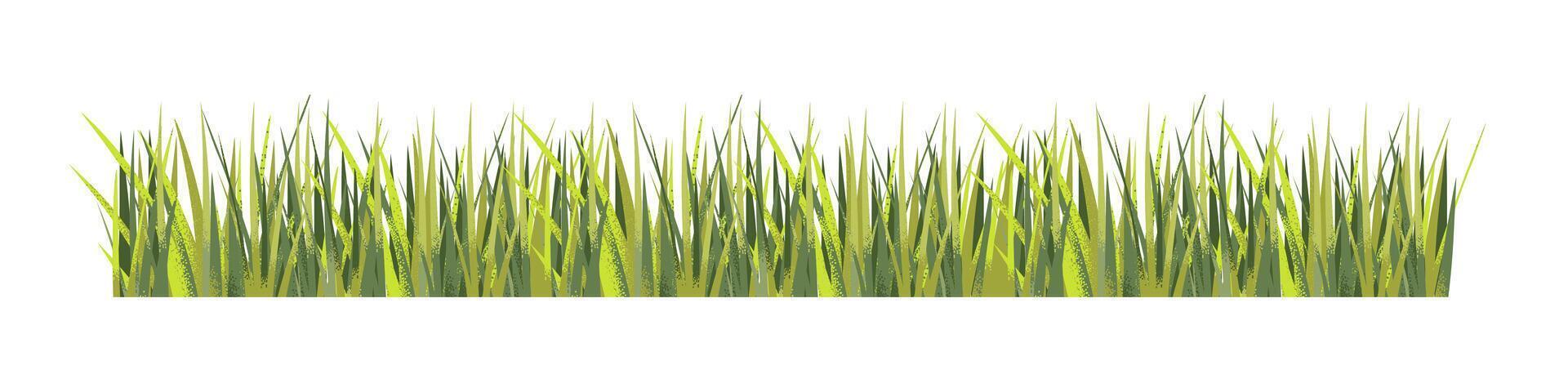 Green Grass Tufts border for Design Projects. Set of clumps of grass in various shapes and sizes isolated. Cartoon illustration. Pro Vector