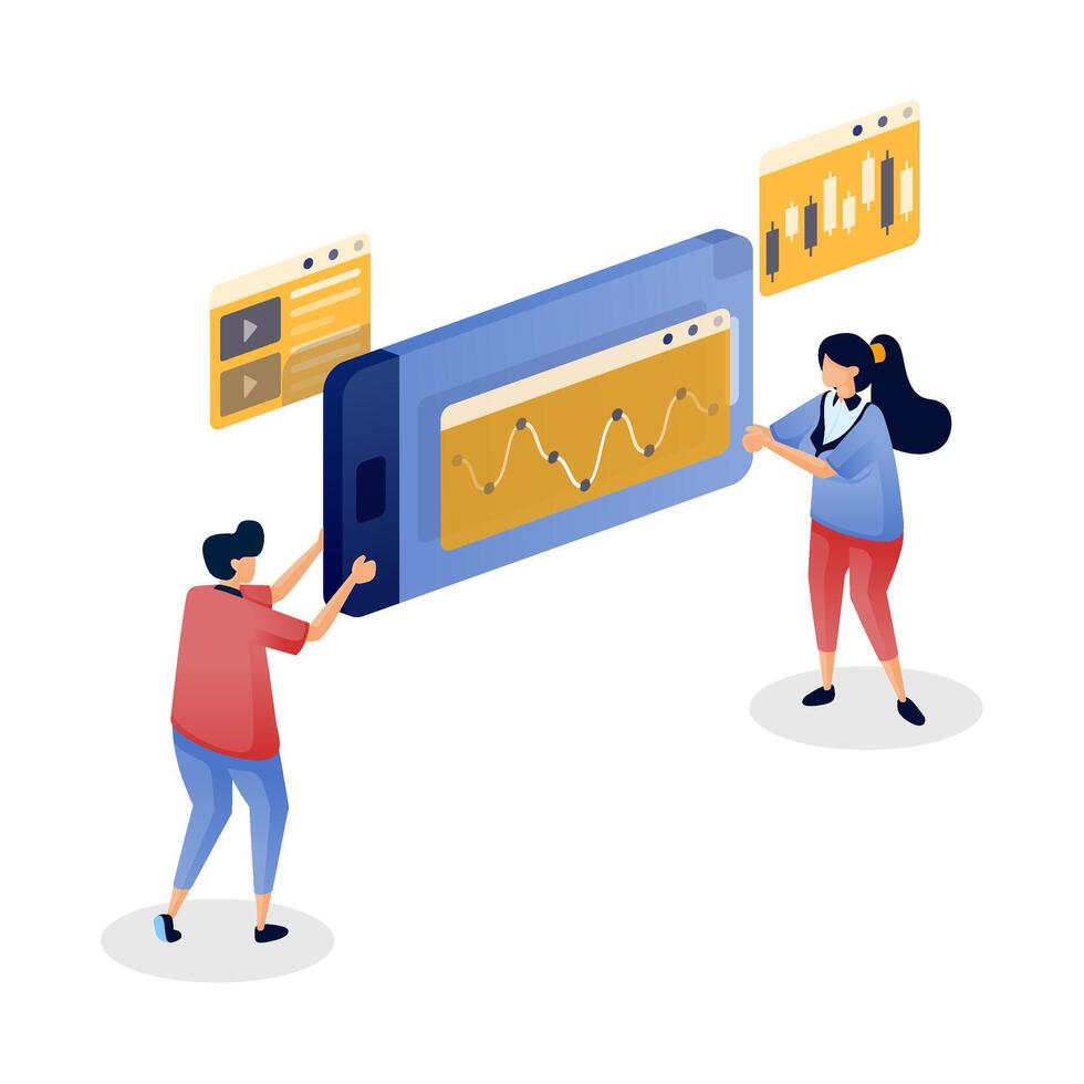 People analyzing data on a smartphone vector