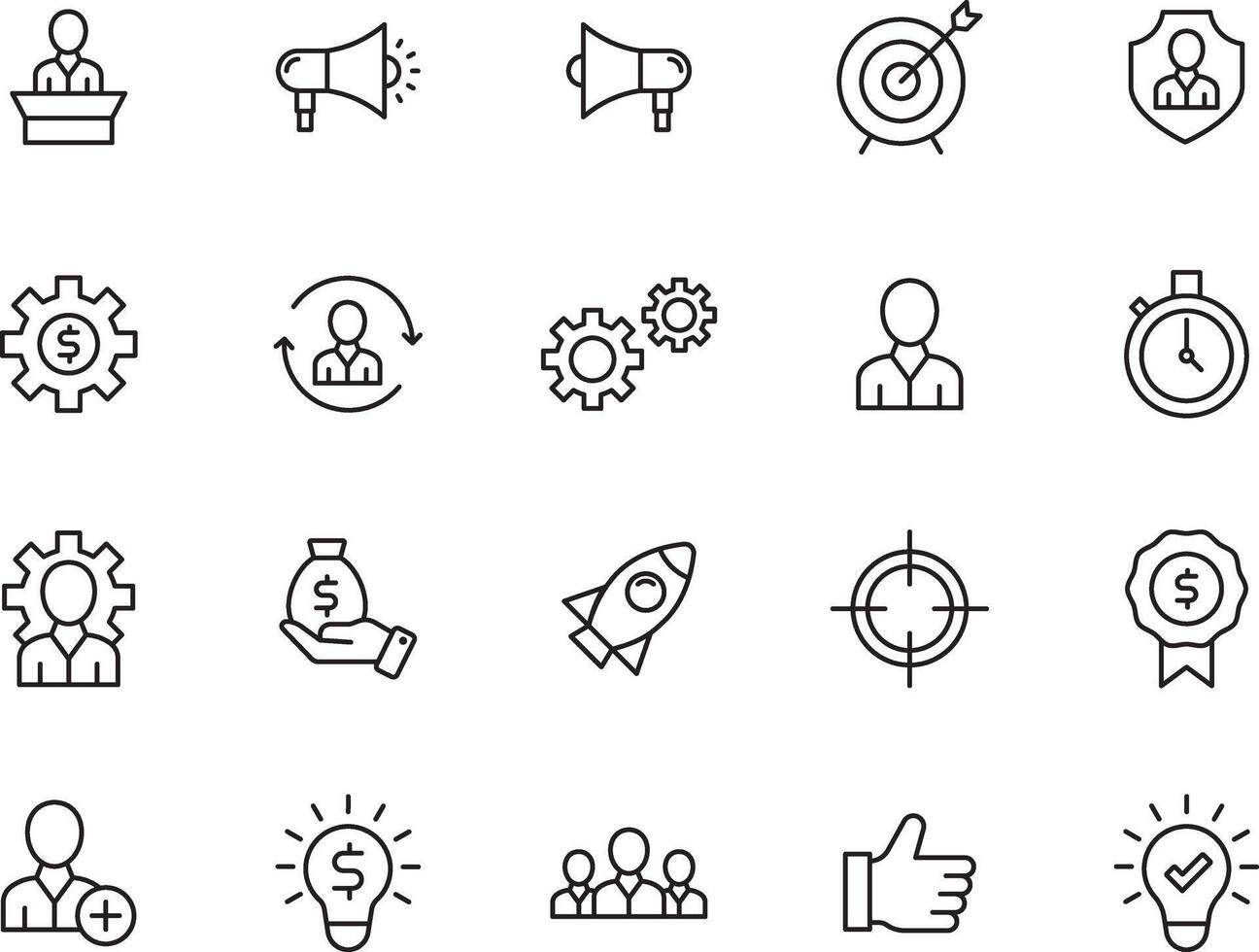 Collection of creative line icons for web and digital technology applications in minimalist outline style vector