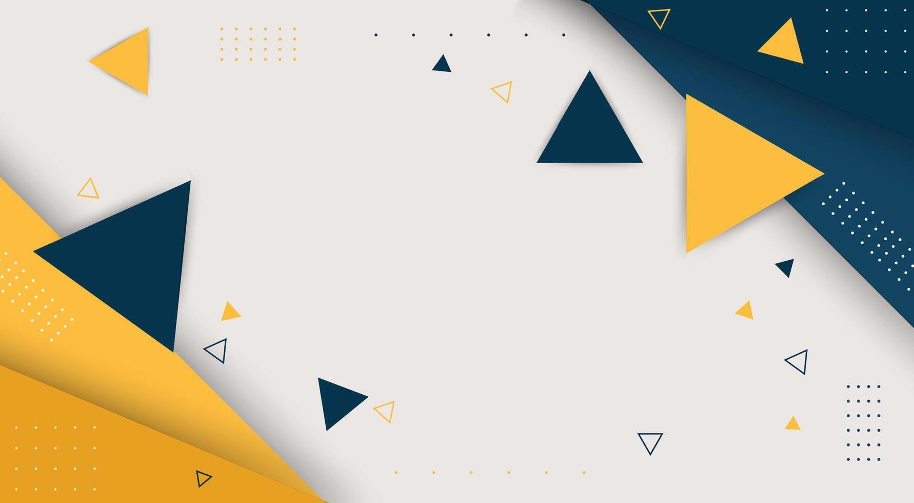 Modern geometric background with overlapping triangles in blue and yellow creating a minimal abstract layout Pro Vector