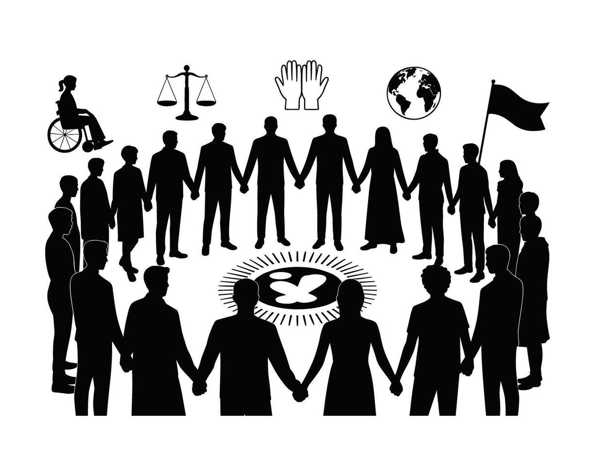 Diverse group of people holding hands in a circle representing unity diversity and global community Free Vector