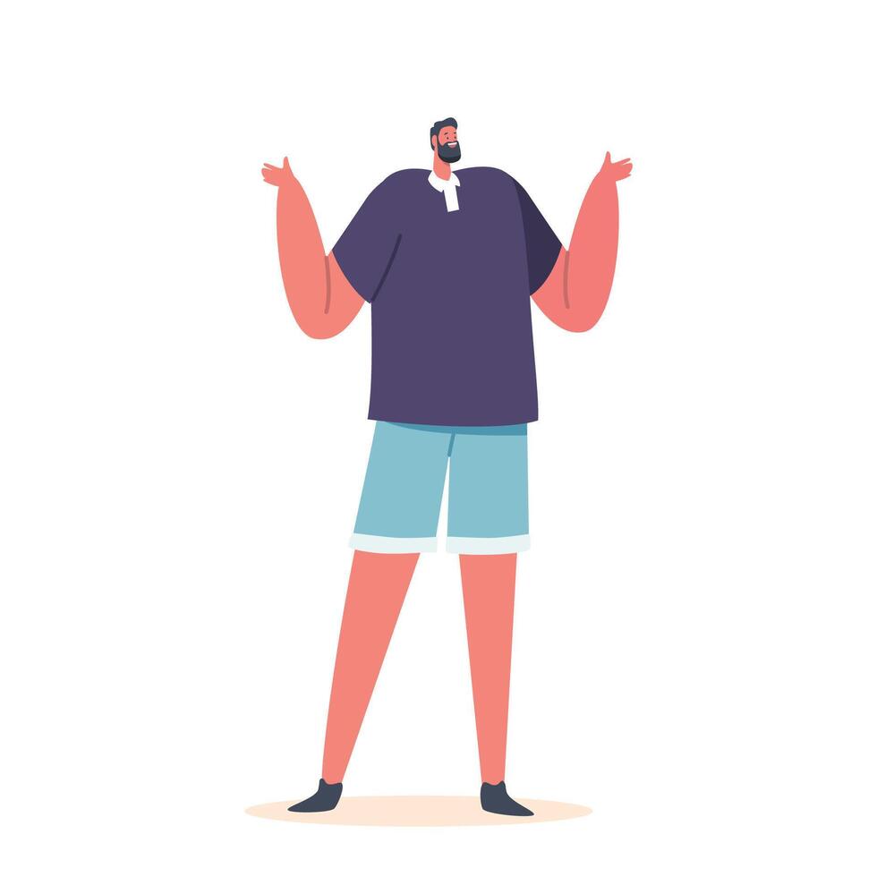 Man Character Shrugs, Expressing Uncertainty Or Indifference Through A Slight Raising And Dropping Of The Shoulders Pro Vector