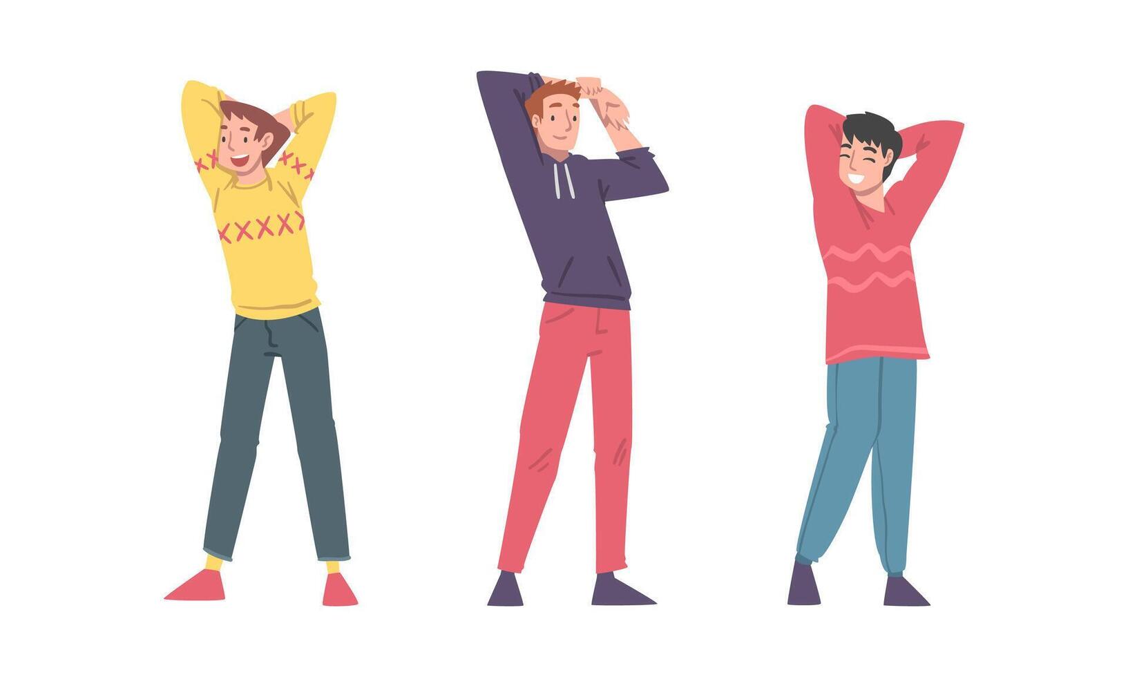 Positive Man Character Standing with Smiling Face Feeling Euphoric and in High Spirits Set Pro Vector