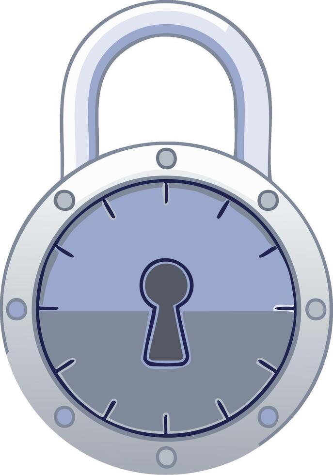 Circular padlock with shackle and keyhole illustration symbolizing security and protection Pro Vector